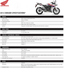 2013 Honda CBR500R - Canadian Specifications/Technical Details